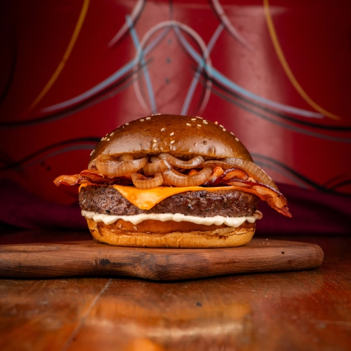 Pão Brioche, hambúrguer artesanal defumado de 160g, maionese da casa, queijo cheddar, alface americana, tomate e cebol... Ver completo